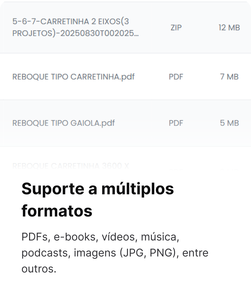 Puedes vender cualquier archivo que se pueda almacenar dentro de tu plan (PDFs, videos, audios, imágenes, entre otros).
