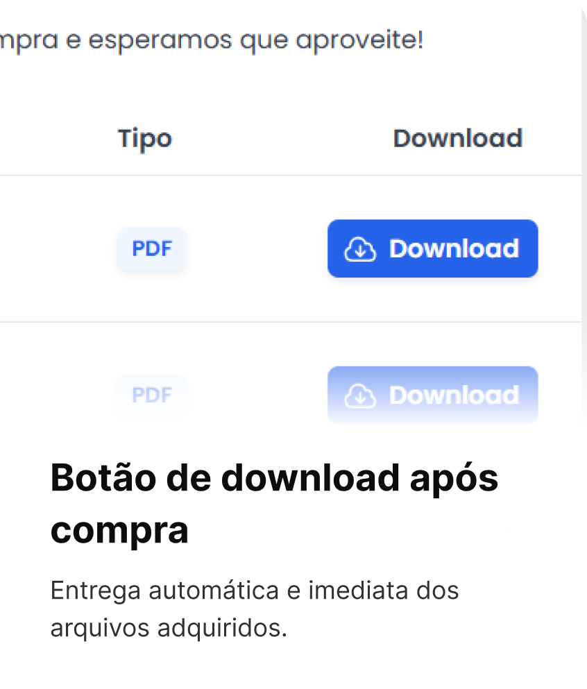 Vende ebooks, cursos, música, videos o cualquier archivo digital con entrega automática y segura. Ofrece más practicidad a tu cliente y más agilidad para ti.